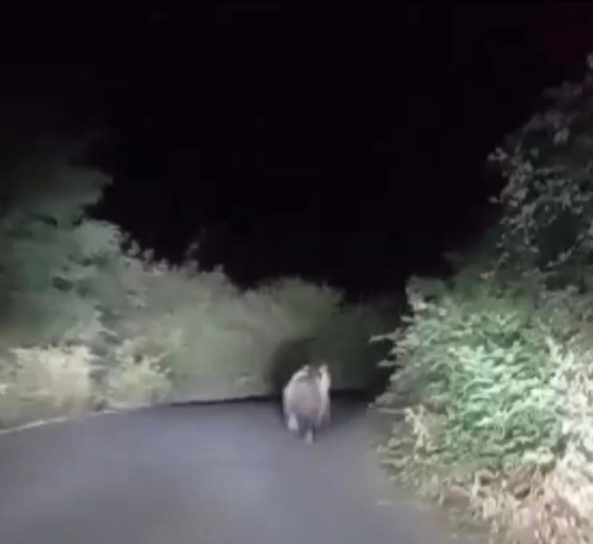 Arifiye ilçesi Kışlaçay Mahallesi’nde gece saatlerinde ilerleyen vatandaşların güzergahında yola inen bozayı görüntülendi. Mahalleye çıkış rampasında bir süre aracın önünde koşan ayı, daha sonra yoldan çıkarak ormanlık araziye girdi. O anlar ise cep telefonu kamerası ile saniye saniye kaydedildi. Görüntüleri kaydeden kişilerin, “Aslanım benim koşuyor tay gibi” ifadeleri de dikkatlerden kaçmadı.