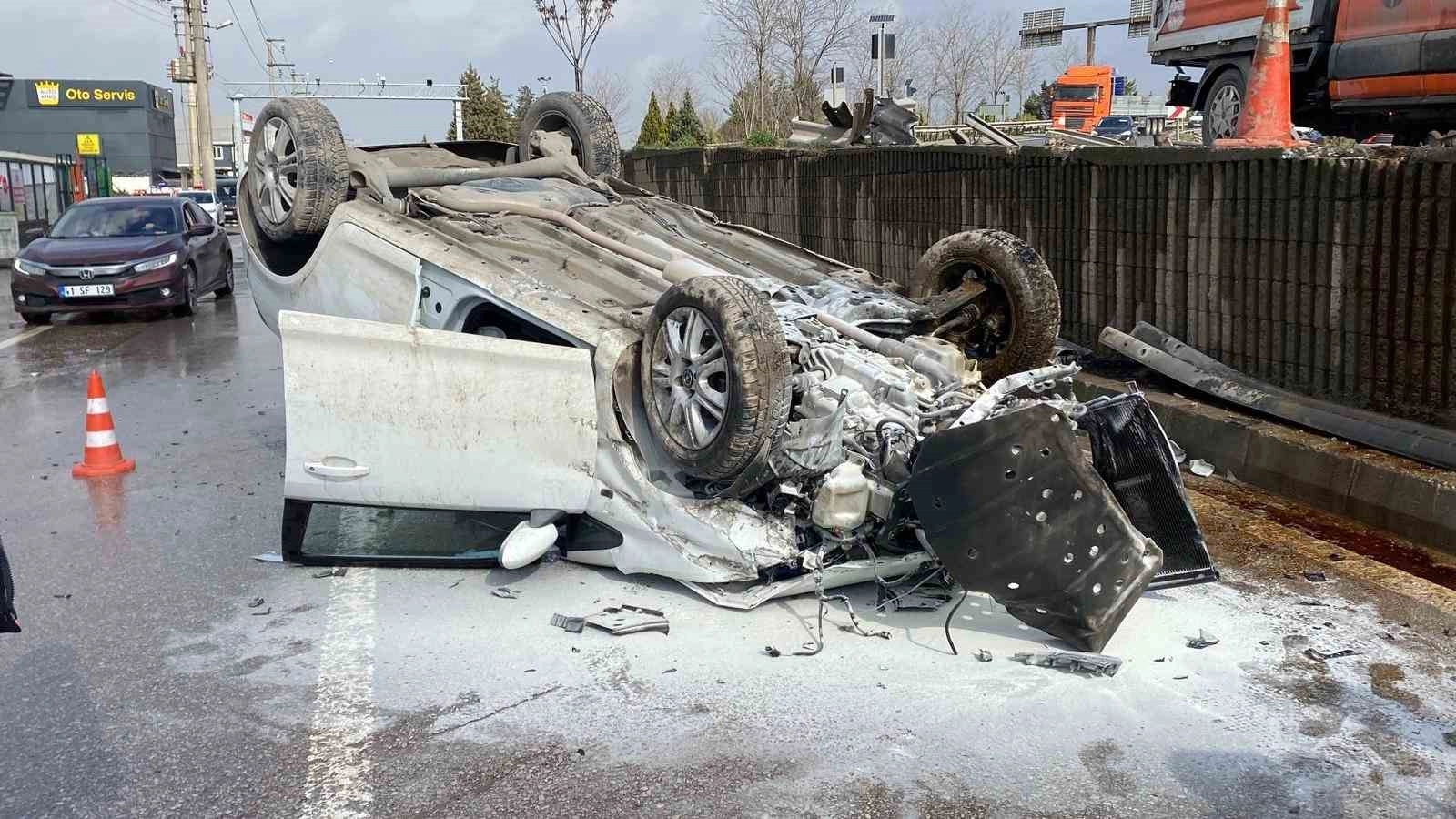 Kocaeli’de 5 saat önce meydana gelen kazanın ardından aynı yerde yaşanan ikinci kazada otomobil yan yola düşerek ters döndü, 2 kişi yaralandı.