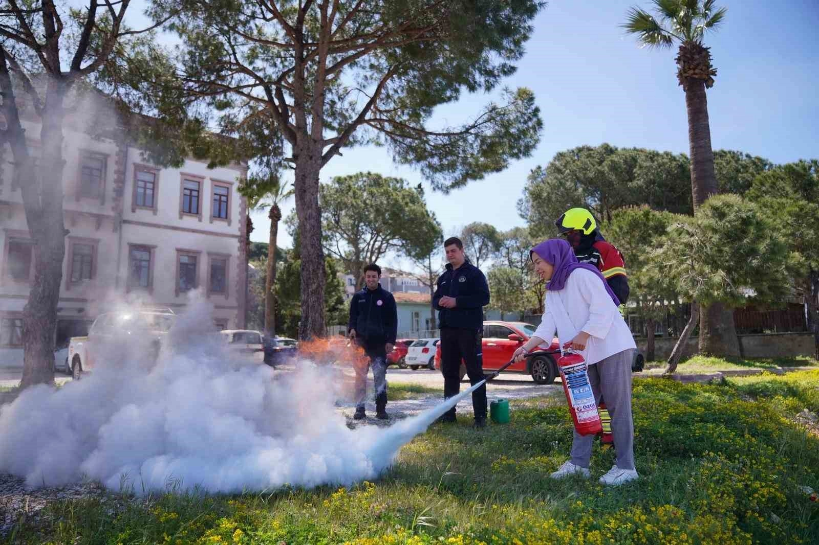 Bu kapsamda Ayvalık Belediyesi çalışanlarına da yangın tatbikatı yaptırıldı. Personelin aktif katılım sağladığı eğitimlerde, yangın anında doğru müdahale yöntemleri birebir uygulanarak muhtemel risklere karşı farkındalık artırıldı.