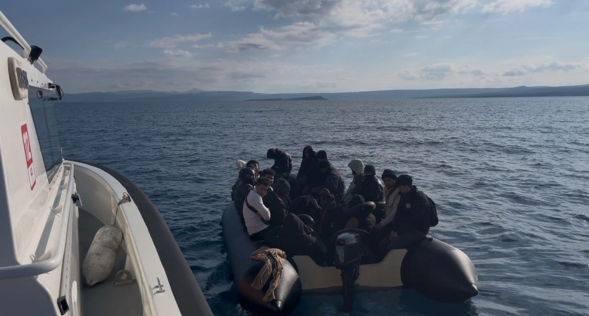 Balıkesir’in Ayvalık ilçesi açıklarında Sahil Güvenlik ekipleri, lastik botta 20 düzensiz göçmen yakaladı.