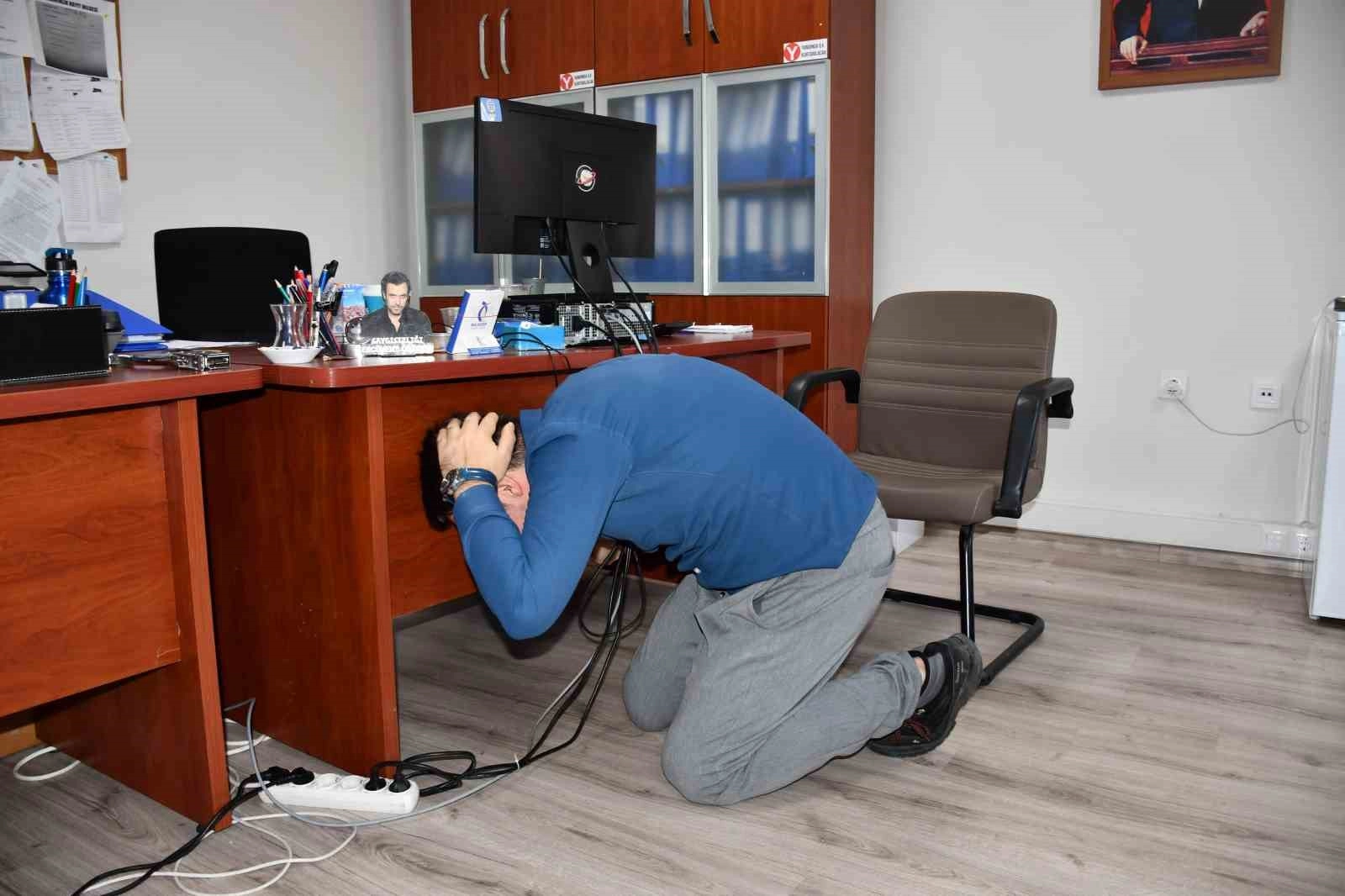 Tatbikatın başlangıcında, deprem alarmı verilerek sarsıntı senaryosu simüle edildi. Bu esnada, tatbikatın en kritik bölümlerinden biri olan "Çök-Kapan-Tutun" hareketi uygulandı. Deprem sırasında hayatta kalmak için önemli bir davranış olan bu hareket, bireylere doğru pozisyon alarak sarsıntının etkilerinden korunmalarının önemiyle anlatıldı. Katılımcılar, deprem anında nasıl güvenli bir şekilde hareket etmeleri gerektiğini öğrenerek, bu temel davranışın hayati önemini kavradılar.