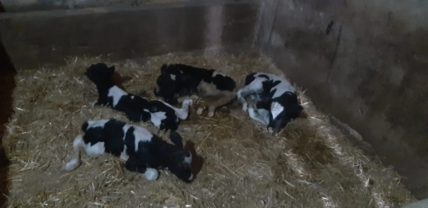 Balıkesir’in Susurluk ilçesine bağlı Ilıcaboğazı kırsal mahallesinde inek, aynı anda 5 buzağı dünyaya getirdi.