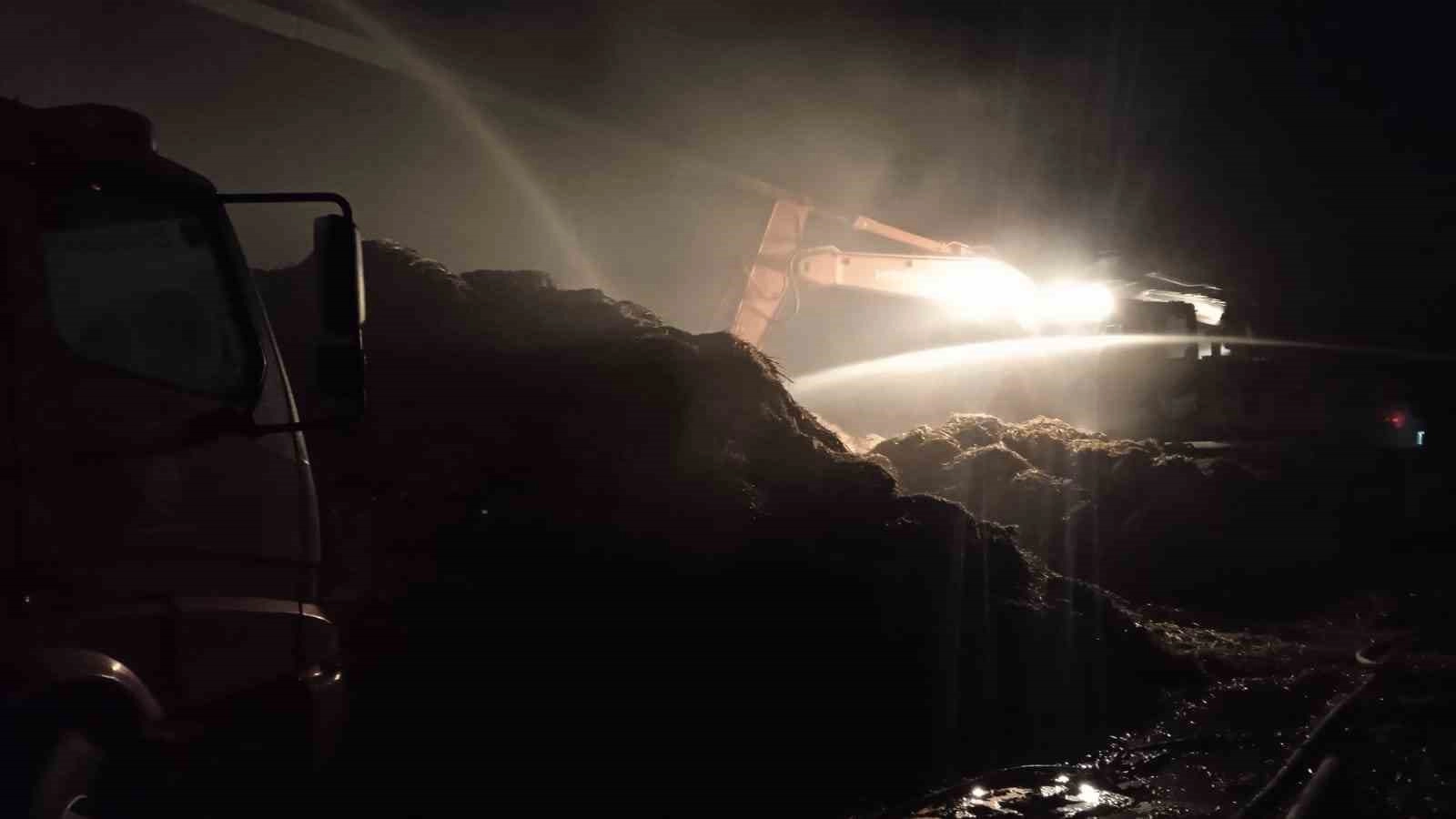 Büyük çaplı saman yangını, itfaiye ekiplerinin uzun uğraşları sonucu kontrol altına alındı.