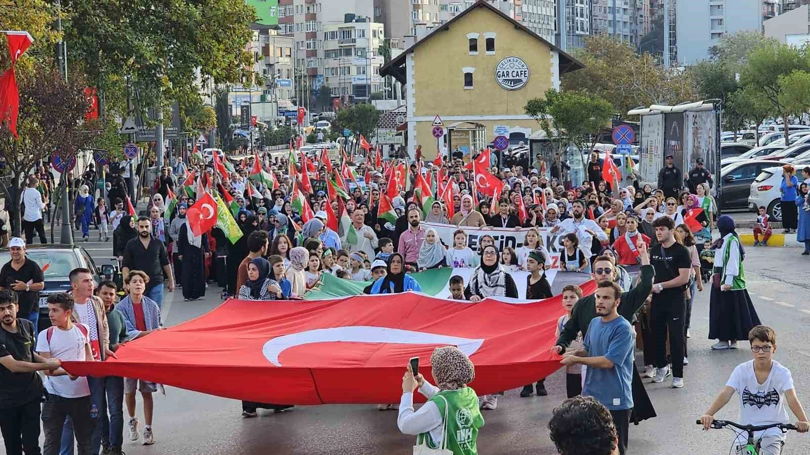 Balıkesir’in Bandırma ilçesinde İsrail’in Gazze’ye yönelik saldırılarının birinci yıl dönümünde Filistin’e destek amacıyla yürüyüş düzenlendi.