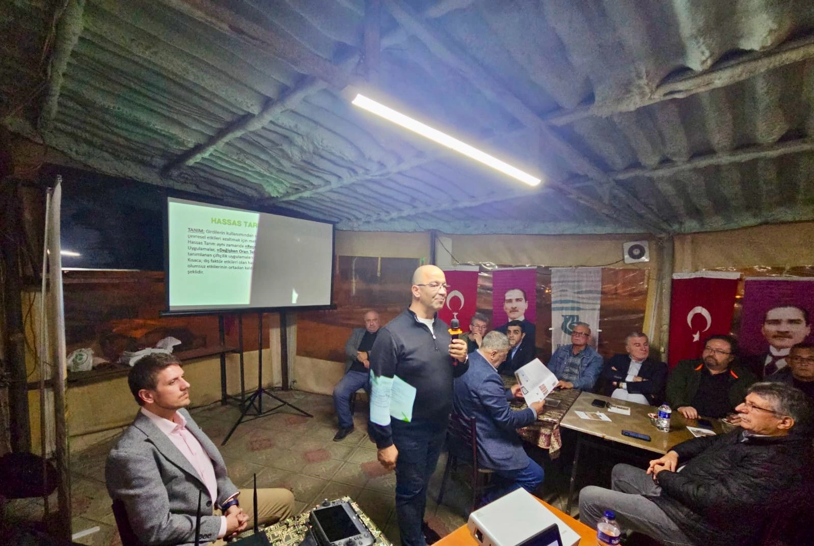 Eğitimde ana gündem maddesi tarımsal drone teknolojileri olurken, etkinliğin moderatörlüğünü Bandırma Belediye Meclis Üyesi ve Ziraat Mühendisi Burak Uğur üstlendi. Programa tarımsal drone teknolojileri alanında uzman Baş Pilot Burçak Sevim de katılarak, üreticilere drone destekli ilaçlama, gübreleme ve hassas tarım uygulamaları hakkında kapsamlı bilgiler verdi.