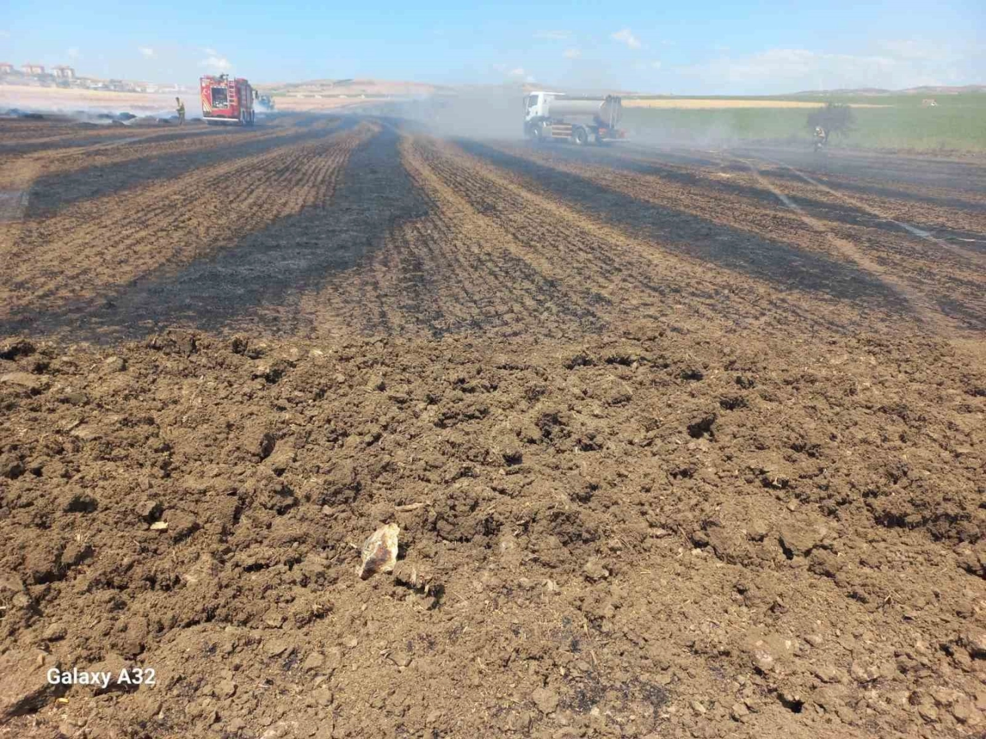 Henüz belirlenemeyen bir nedenle başlayan yangın, rüzgarın saatte 50-60 kilometre hızla esmesiyle kısa sürede geniş bir alana yayıldı. Yangında kanola ve buğday ekili tarlalar zarar gördü. Dumanları fark eden vatandaşların 112 Acil Çağrı Merkezi’ne yaptığı ihbar üzerine bölgeye çok sayıda ekip sevk edildi.