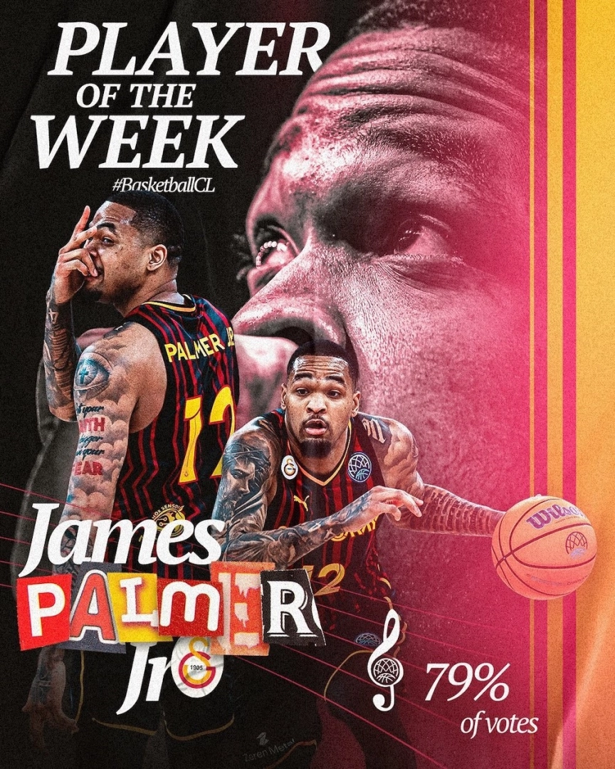 Basketbol Şampiyonlar Ligi 2024-2025 sezonu çeyrek final ikinci maçının ardından haftanın oyuncusu da belli oldu. Daha önce son 16 turunun en değerli oyuncusu (MVP) olan Galatasaraylı basketbolcu James Palmer Jr., bu haftanın da oyuncusu seçildi.