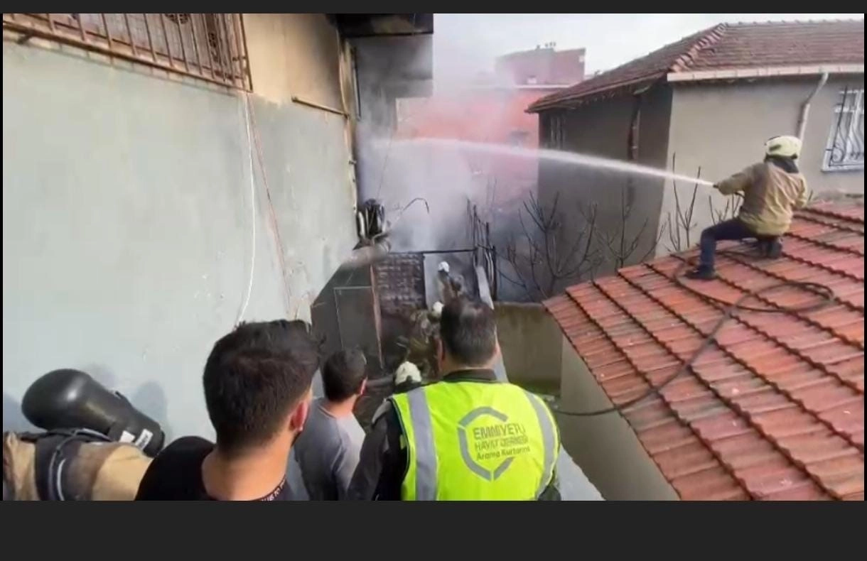 Yangın, itfaiye ekipleri tarafından söndürülürken, kafasına beton parçası düşen itfaiye eri olayı yara almadan atlattı.