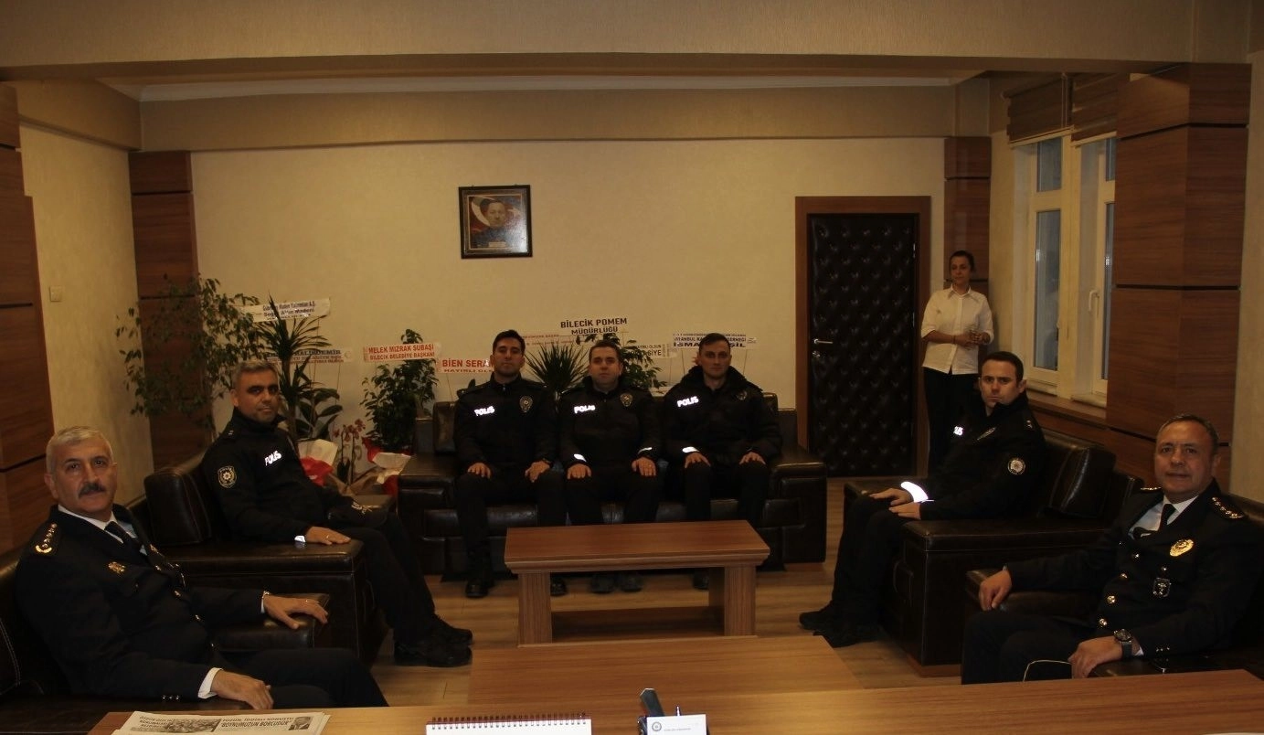 Bilecik İl Emniyet Müdürü Hakan Yılmaz’a Bilecik Polis Meslek Eğitim Merkezi (POMEM) Müdürü Suat Günbey hayırlı olsun ziyaretinde bulunarak, kentin huzuru için gece gündüz çalışacakları mesajı verdiler.