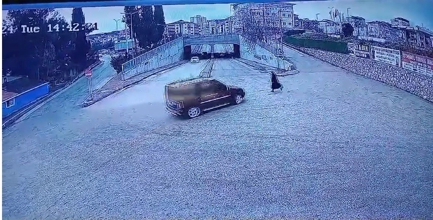 Bilecik’te bir hafifi ticari aracın yayaya çarpma anı güvenlik kamerasına yansıdı.