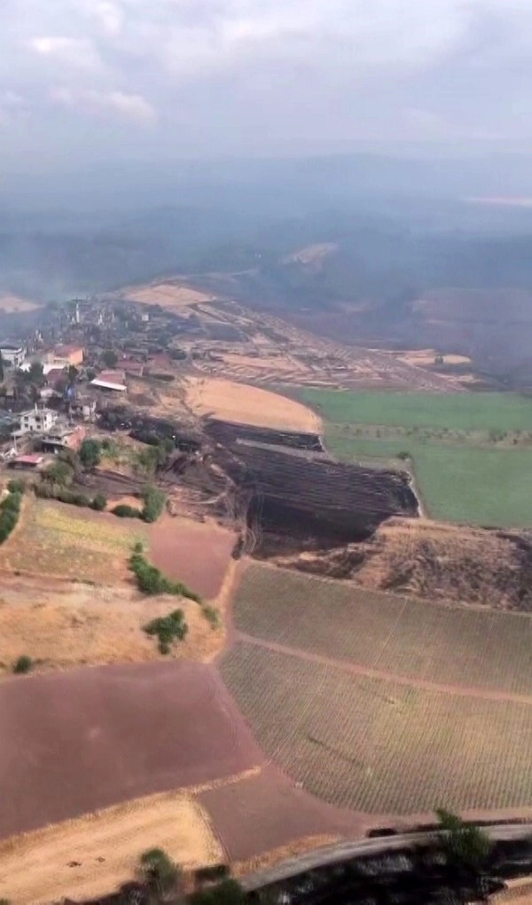 Sakarya’nın Taraklı ilçesinde başlayan orman yangını, rüzgarın etkisiyle Bilecik’in Gölpazarı ilçesine bağlı 9 köyü etkisi altına almıştı. 3 gündür havadan ve karadan binlerce kişinin canla başla çalışarak kontrol altına almaya çalıştığı alevler, bu sabah yağan yağmurun etkisiyle kısmen kontrol altına alındı. Bölgede alevler yerini dumanlara bırakırken, 150’e yakın arazöz yerden soğutma işlemi yapıyor. 35 kilometrelik bir alanda büyük tahribat oluşurken, yangının bıraktığı tahribat havadan böyle görüntülendi.