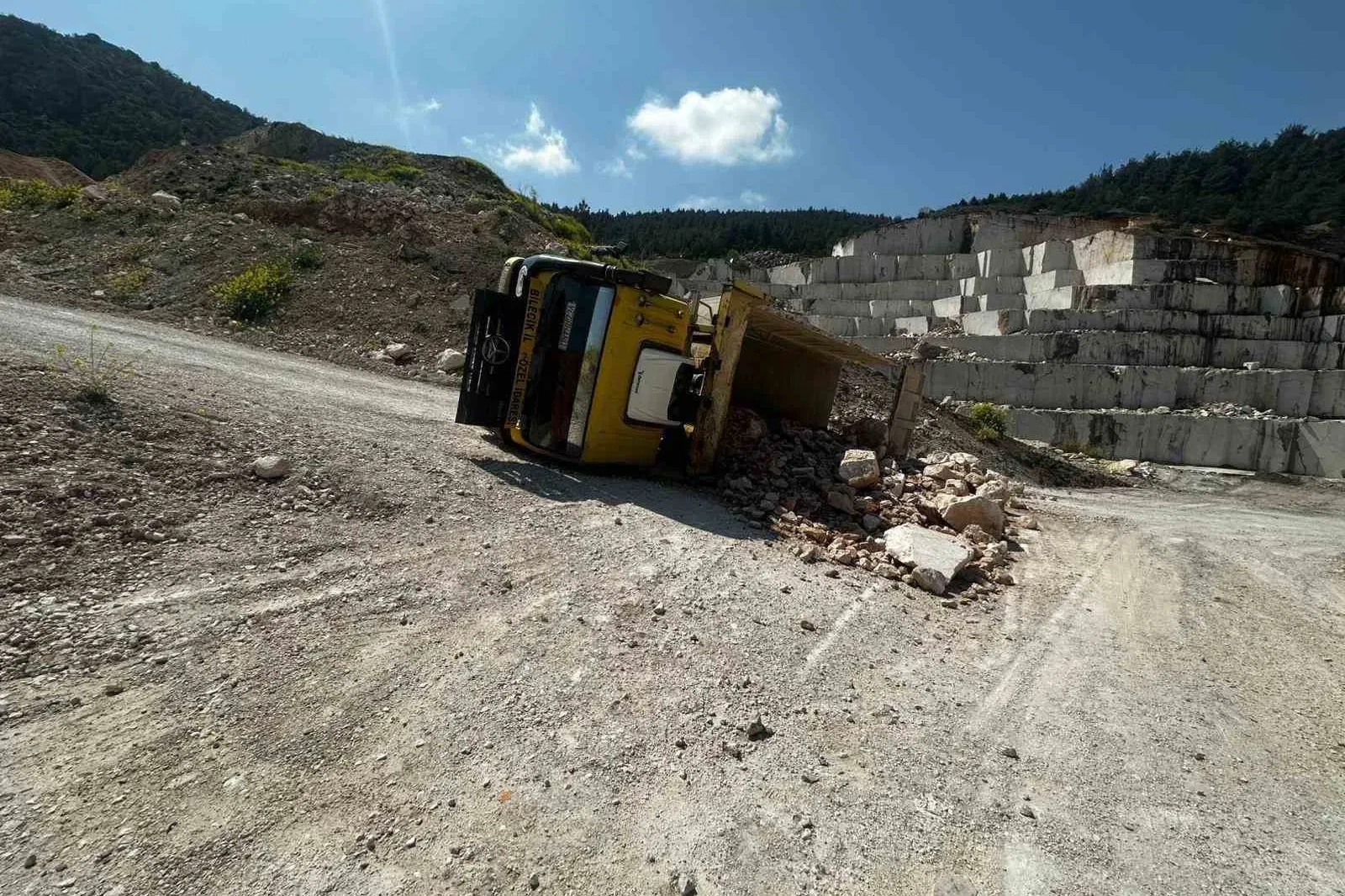 Bilecik’te taş yüklü kamyon devrildi: 2 yaralı