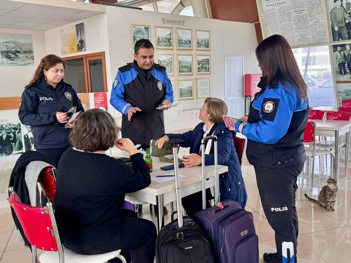 Bilecik’te otobüs terminalinde vatandaşlara yönelik güvenlik bilgilendirme faaliyeti gerçekleştirildi.