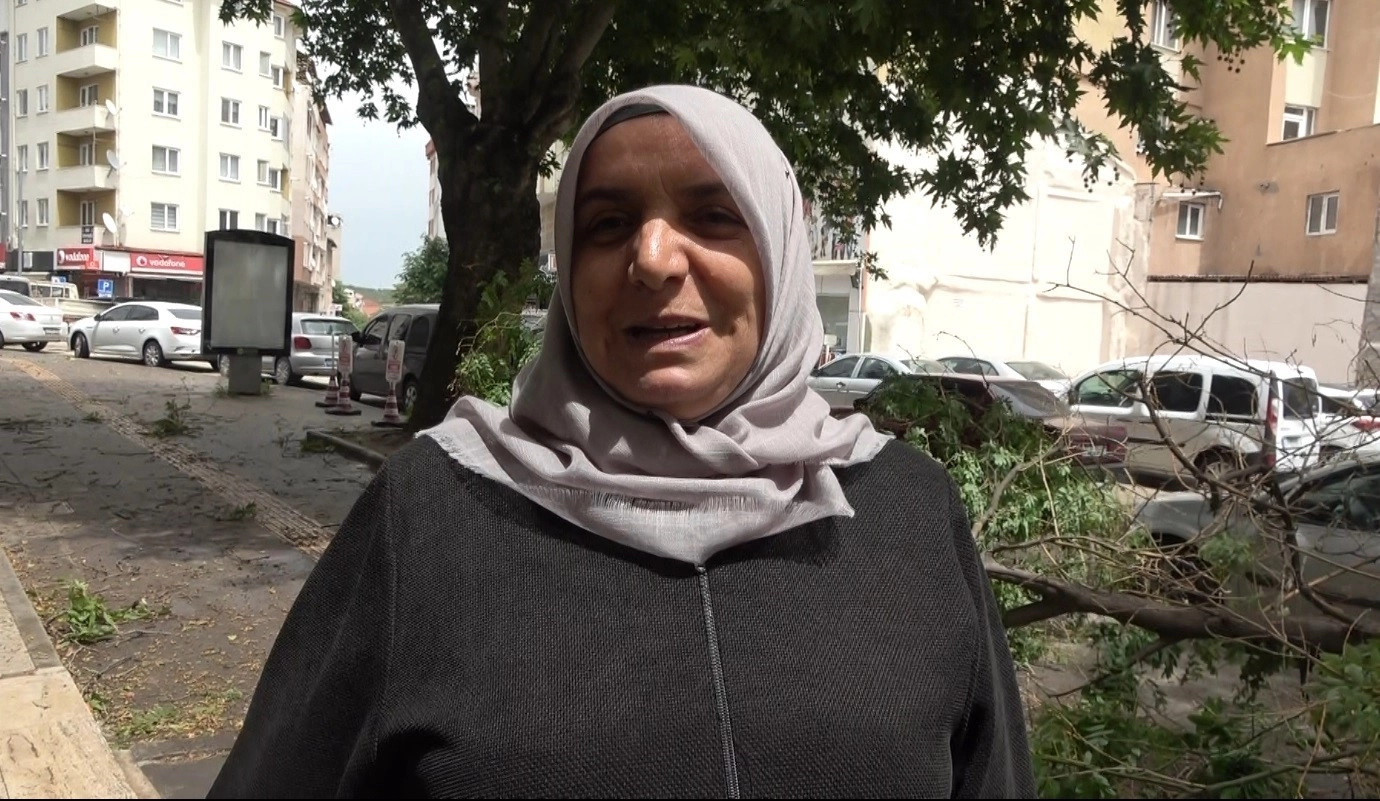 Yaşanan fırtınada saniyelerle düşen koca ağaç dalından kurtulan Naciye Demir, "Ağaç birden düştü, benim üstüme de düşebilirdi" dedi.
