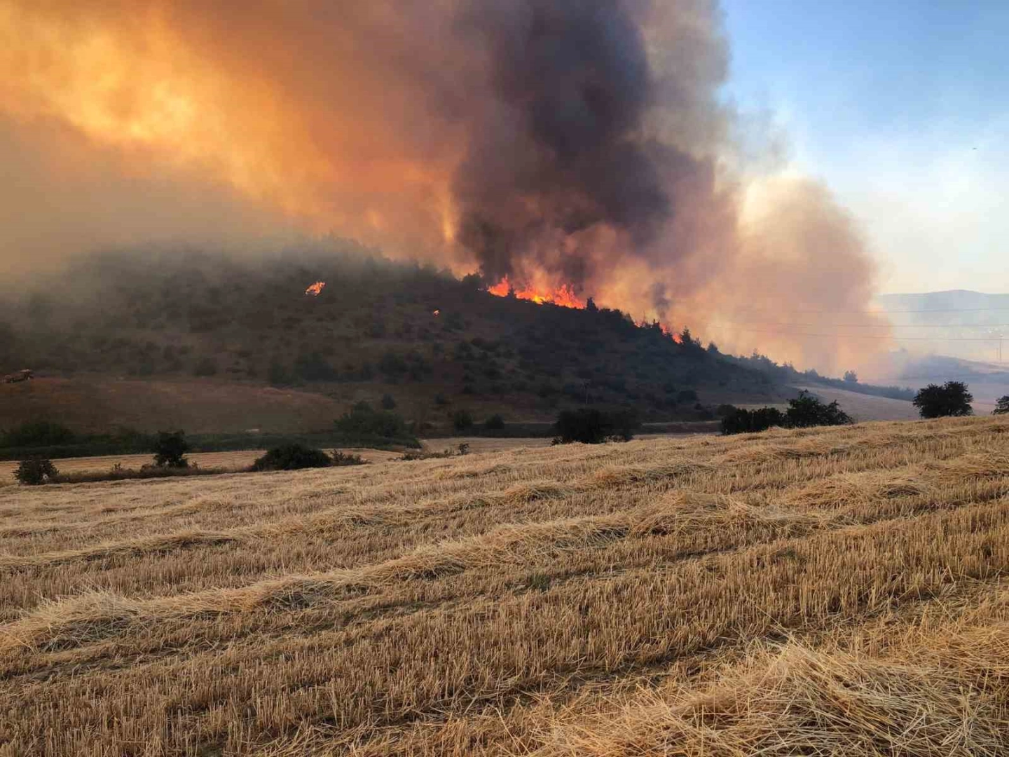 Bilecik’in Osmaneli ilçesine bağlı Selimiye köyünde bir tarlada biçerdöverden kaynaklı olduğu tahmin edilen yangın çıktı. Yangın rüzgarın etkisiyle diğer tarlalara ve ormaklık alana sıçrarken, köylüler yangının büyümemesi için büyük büyük uğraş verdi. Alevler D650 karayolunu aşarak NATO tesislerine ve bir fabrikaya sirayet etti. Yangına havadan 4 helikopterle, karadan 50’ye yakın arazöz, dozer ve su tankeriyle müdahale edildi. Yangın 4 saatlik uğraşlar sonucu kontrolden altına alınarak söndürüldü.