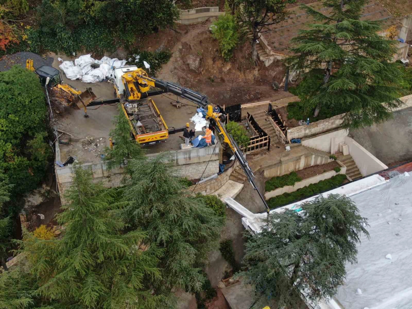 Villada ve villanın olduğu arazide çok sayıda işçinin olduğu ve iş makinesiyle çalışma yapıldığı görüldü.