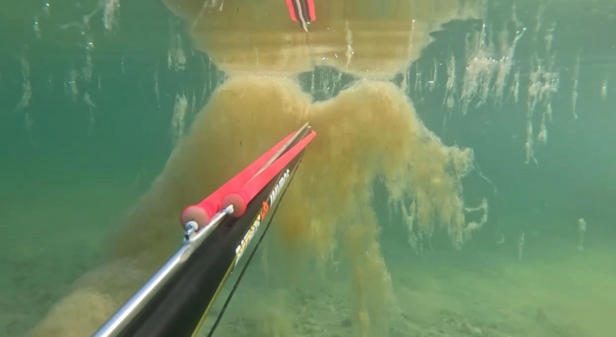 Çevre, Şehircilik ve İklim Değişikliği Bakanlığı’nın uyarısının ardından Büyükçekmece Kumburgaz’da hobi amaçlı zıpkınla dalgıçlık yapan vatandaş, denizin 1 buçuk metre derinliğindeki müsilajı su altı kamerasıyla kaydetti.