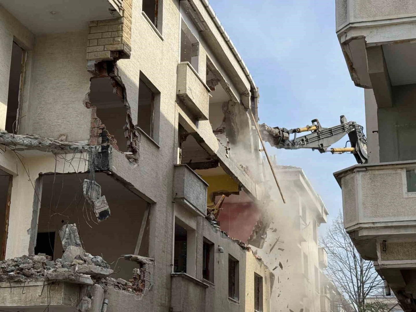Büyükçekmece Belediyesi desteğiyle ilçede depremde yıkılma riski bulunan 5 blok 39 bağımsız bölümden oluşan binaların yıkım çalışmaları başladı.