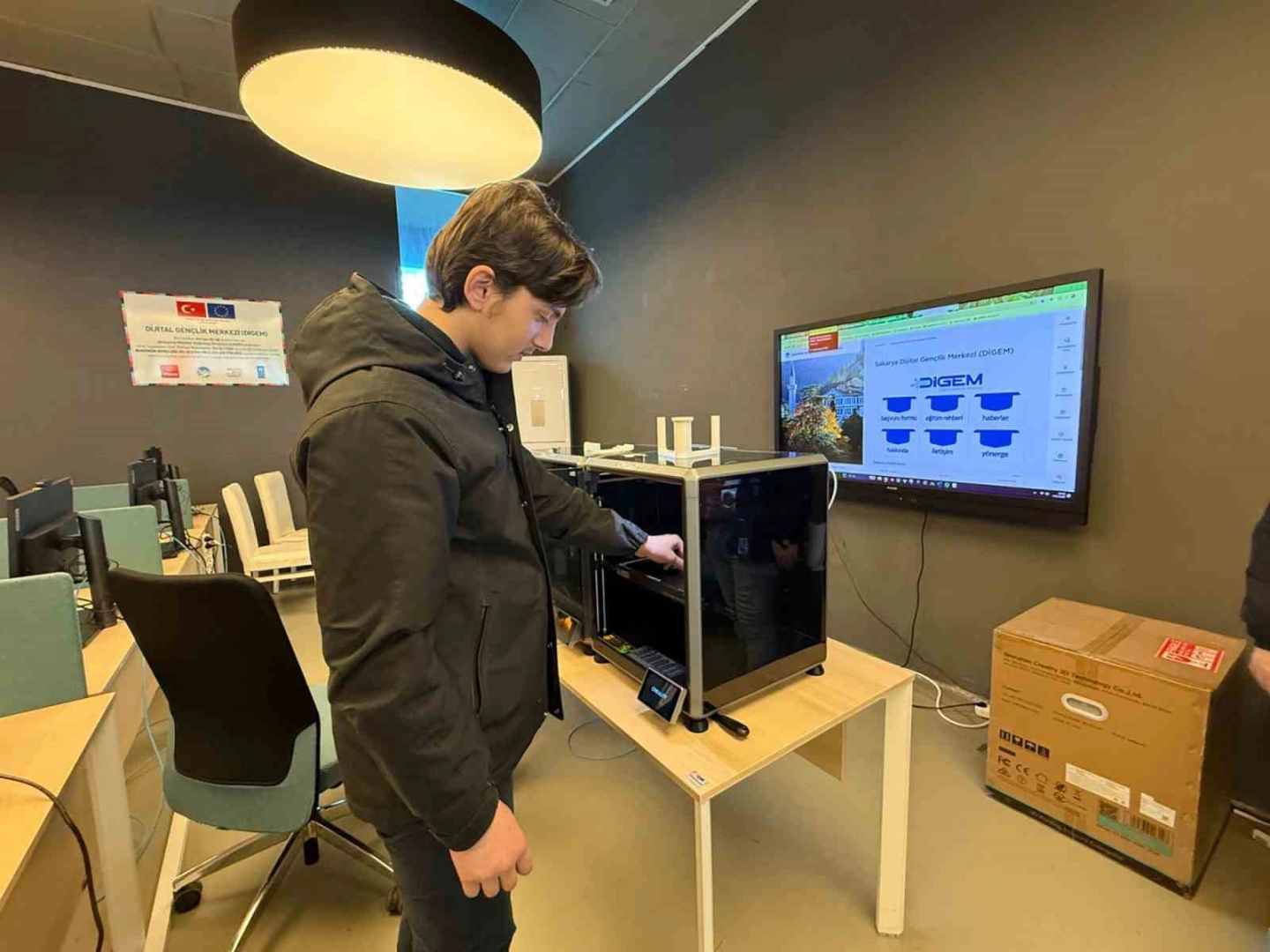 Sakarya Büyükşehir Belediyesi, gençleri teknoloji ve yenilikçi uygulamalarla buluşturmaya devam ediyor. Bu çerçevede Dijital Gelişim Merkezi’ni (DİGEM) ziyaret eden İmam Hatip Lisesi Fen ve Teknoloji Proje Okulu öğrencileri, merkezdeki çalışmaları yerinde inceleyerek teorik bilgilerini dijital dünyanın yenilikçi uygulamalarıyla pekiştirme fırsatı buldu. Öğrenciler, DİGEM’in dijital üretim laboratuvarlarında tasarımın fikir aşamasından ürüne dönüşümüne uzanan süreci yerinde takip ederek teknoloji temelli üretimin nasıl şekillendiğini deneyimledi. 3D yazıcı uygulamalarıyla dijital ortamda hazırlanan tasarımların somut ürüne dönüşümünü izleyen öğrenciler, üretim süreçlerinin tüm aşamalarını yerinde incelediler. Sanal gerçeklik alanlarında ise VR gözlük kullanan öğrenciler, farklı dijital ortamları deneyimleyerek teknoloji tabanlı uygulamaları yakından tanıdı. Eğitici ve etkileşimli içeriklerle zenginleşen ziyaret, gençlerin teknolojiye olan ilgisini artıran öğretici bir buluşma oldu.