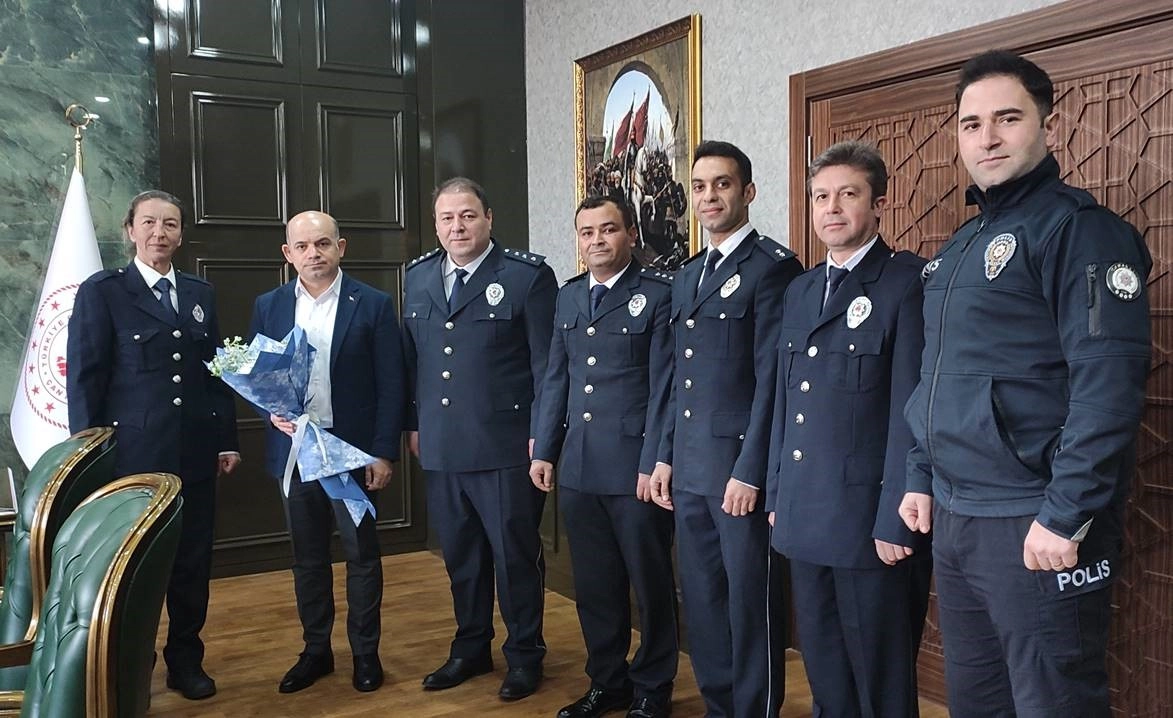 Emniyet Teşkilatının 180. kuruluş yılı dolayısıyla İlçe Emniyet Müdür V. Mehmet Selçuk Ceylan ve beraberindeki Personel Çan Kaymakamı Dr. Emre Nebioğlu’nu makamında ziyaret ederek çiçek takdim ettiler. Ziyaretten duyduğu memnuniyeti dile getiren ve Polis Teşkilatının kuruluşunun yıldönümünü kutlayan Çan Kaymakamı Dr. Emre Nebioğlu, tüm emniyet mensuplarına özverili çalışmalarından dolayı teşekkür ederek meslek hayatlarında kolaylık ve başarılar diledi. Ardından Atatürk Şehir Meydanında bulunan Atatürk Anıtı’na çelenk sunuldu, saygı duruşunda bulunulması ve İstiklal Marşı’nın okunmasıyla tören sona erdi.