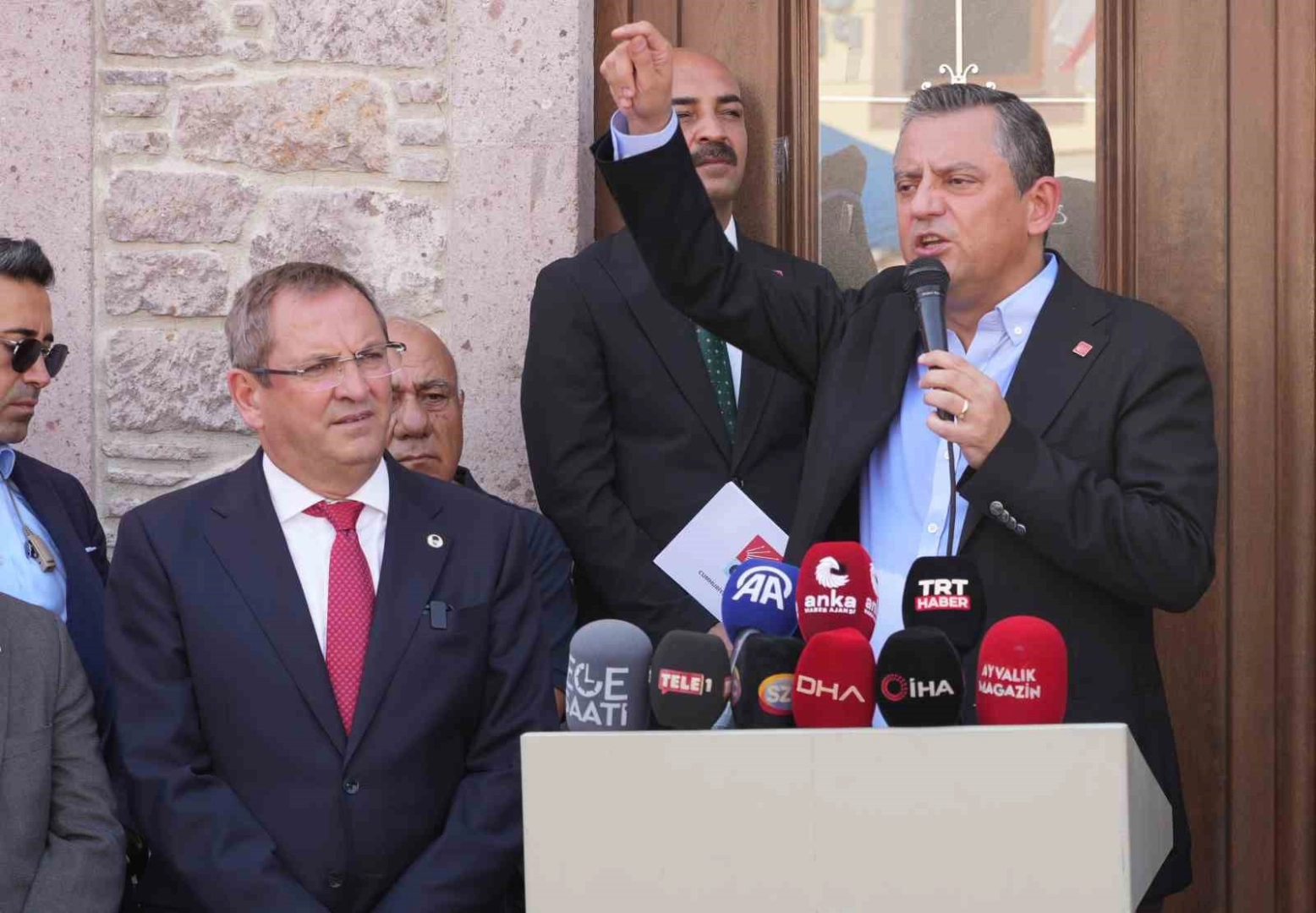 Bir dizi ziyaret için Balıkesir’in Ayvalık ilçesinde bulunan CHP Genel Başkanı Özgür Özel, CHP İlçe Teşkilatı önünde vatandaşlara seslendi. Özel, "Balıkesir’de, Büyükşehir’de dahil olmak üzere, 4’ü hariç bütün belediyelerden ve Balıkesir nüfusunun yaklaşık yüzde 93’üne karşılık gelen alanda Cumhuriyet Halk Partili belediye başkanlarının seçilmesi hepimiz için son derece değerli, son derece kıymetlidir. Bunun için hepinize yürekten teşekkür ediyorum” dedi.
