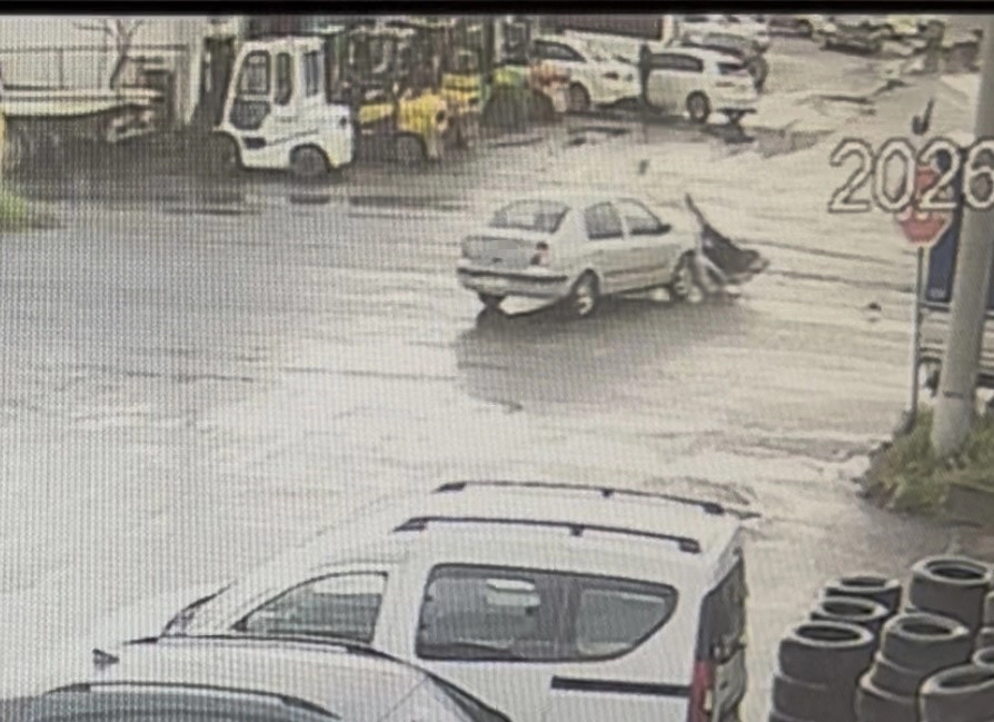 Tekirdağ’ın Çorlu ilçesinde otomobille çarpışan motosiklet sürücüsü yaralandı, kaza anı kameraya yansıdı.