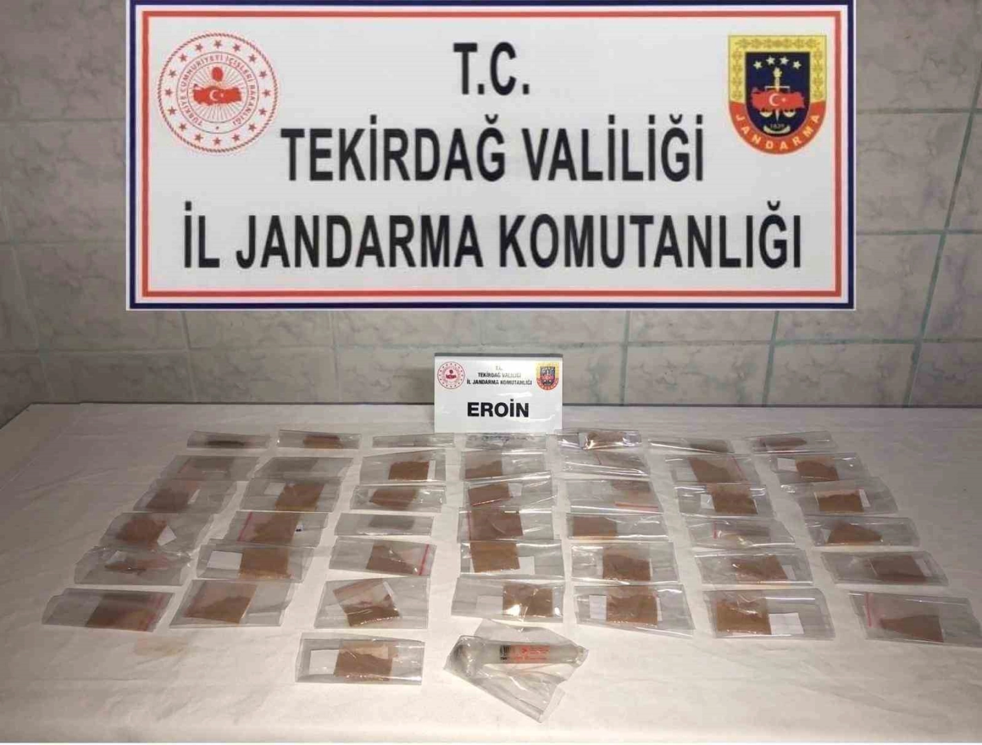 Tekirdağ İl Jandarma Komutanlığı ekiplerince 1 Ekim 2024 tarihinde Çorlu Önerler Mahallesi’nde K.Y. ve F.A. isimli şahısların üzerlerinde ve araçlarında yapılan aramada, 37 gram eroin ve 1 adet uyuşturucu kullanma aparatı ele geçirildi. Aynı gün, Çerkezköy Atatürk Mahallesi’nde A.U. isimli şahsın kaba üst aramasında ise 3 gram bonzai bulundu.