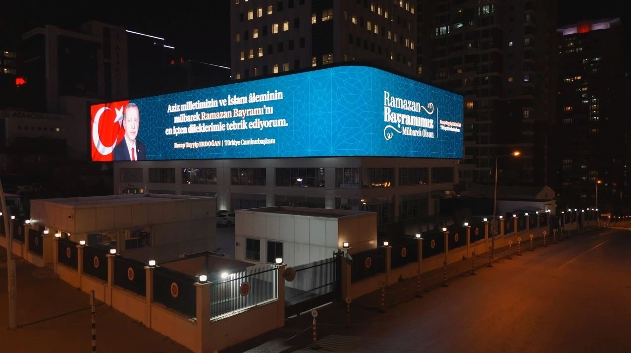 Cumhurbaşkanlığı İletişim Başkanlığı’nın dijital ekranında, Cumhurbaşkanı Recep Tayyip Erdoğan’ın Ramazan Bayramı mesajı yayınlandı.