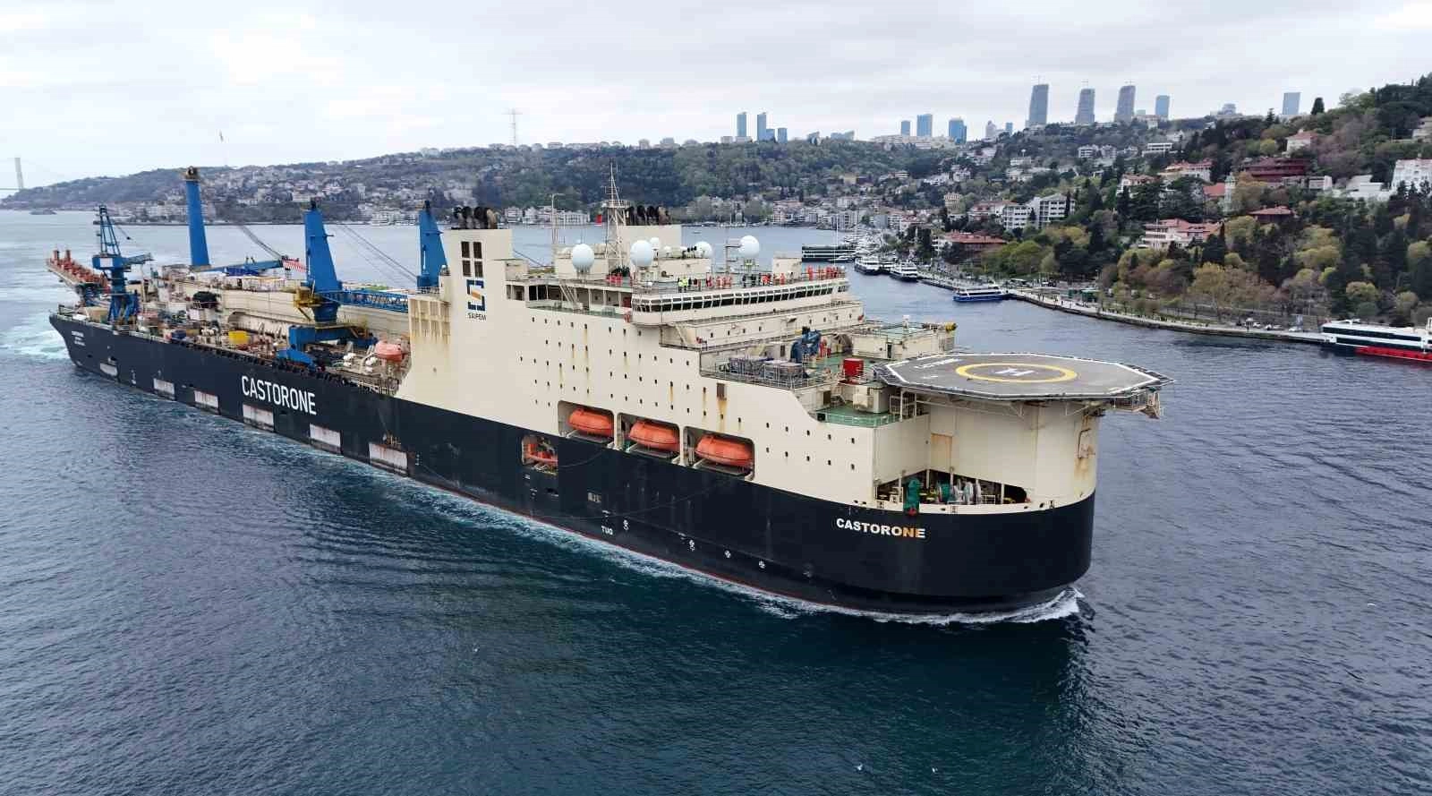 Daha önce Türkiye’nin Karadeniz’deki doğal gaz sahalarında görev alan Castorone’un, Boğaz geçişinin ardından Romanya’ya doğru seyrine devam ettiği öğrenildi. Boğaz trafiği, dev geminin geçişinin tamamlanmasının ardından yeniden normale döndü.