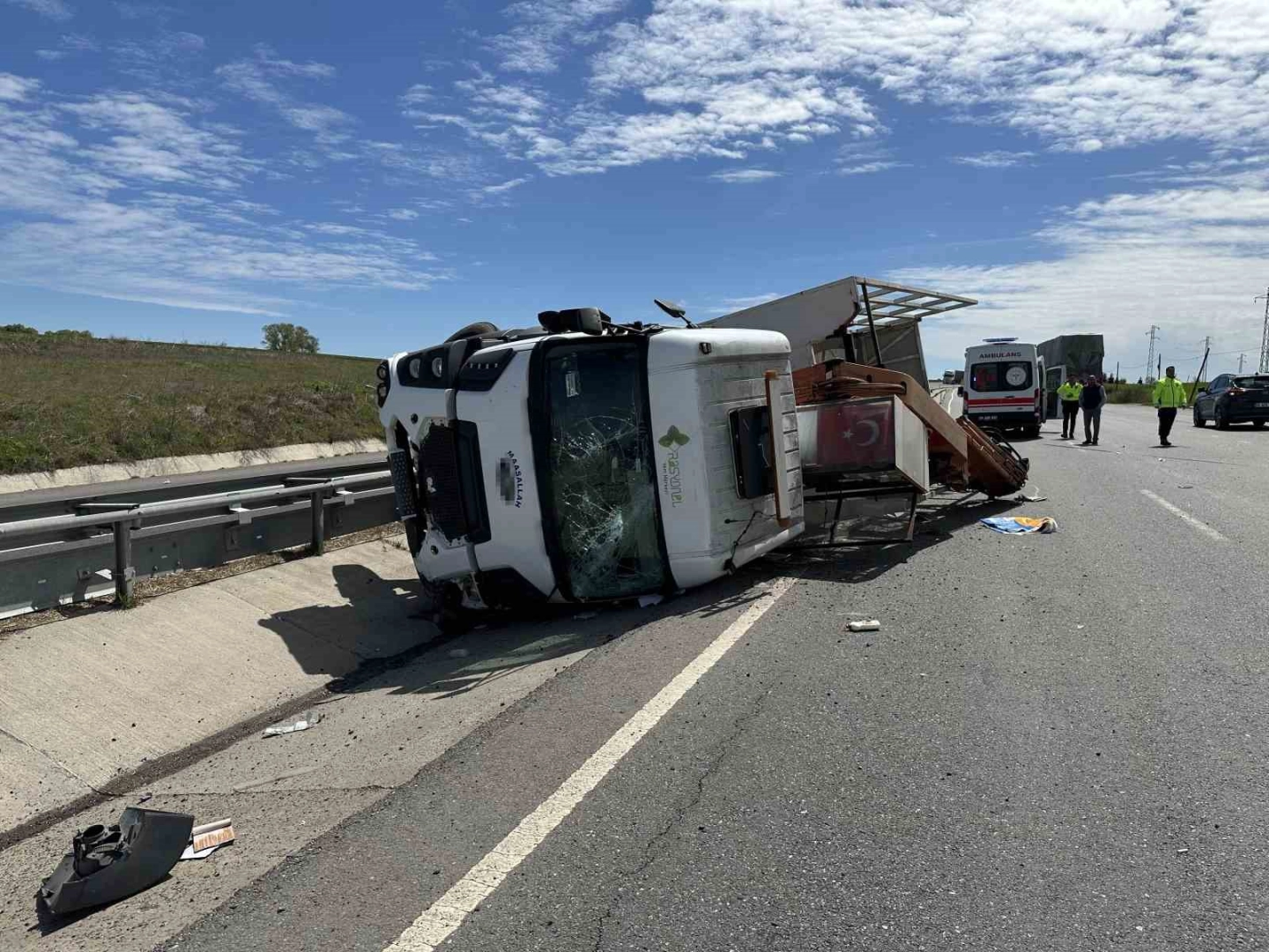 Tekirdağ’ın Muratlı ilçesinde kamyonun devrilmesi sonucu meydana gelen trafik kazasında 1 kişi yaralandı.