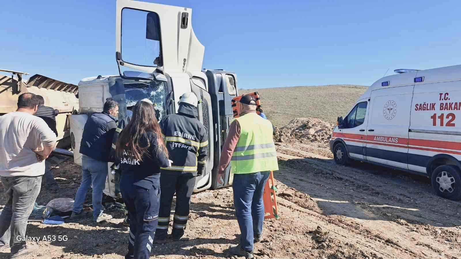 Edirne’nin Sazlıdere köyünde bulunan hafriyat döküm sahasında sürücü S.A.’nın kullandığı 59 AFC 700 plakalı kamyon devrildi.