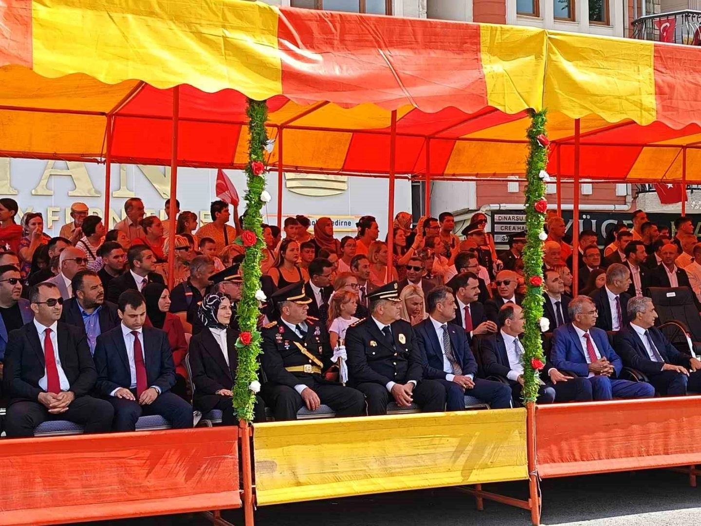Edirne Valisi Yunus Sezer’in makamında tebriklerin kabul edilmesiyle devam eden tören, daha sonra Atatürk Bulvarı’nda 54’üncü Mekanize Piyade Tugay Komutanlığı’na bağlı askeri araçların, komandoların ve diğer birliklerin geçişi ile sürdü. Çok sayıda vatandaş da askeri birliklerin geçişini büyük bir heyecanla izledi.