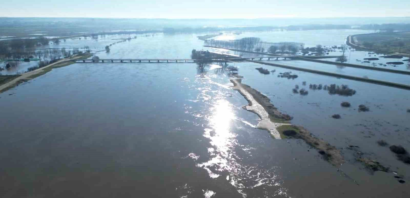 Bulgaristan havzasındaki yağışların ardından Meriç Nehri’nin debisi hızla yükselerek kritik seviyeleri aştı. Nehir yatağının genişlediği Bosnaköy yakınlarında suyun yayılımı durdurulamazken, bölgedeki çok sayıda bağ ve bahçe evi sulara gömüldü.