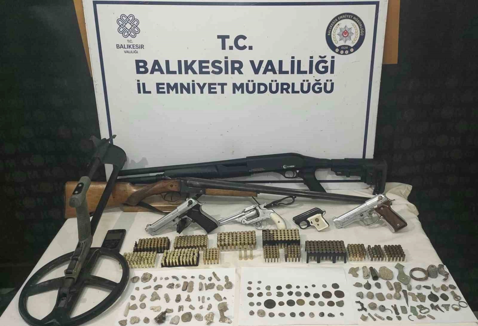 Balıkesir İl Emniyet Müdürlüğü Kaçakçılık ve Organize Suçlarla Mücadele Şube Müdürlüğü (KOM) koordinesinde Bandırma KOM Büro Amirliği ekiplerince Erdek ilçesinde düzenlenen operasyonda çok sayıda ruhsatsız silah, fişek ve tarihi eser ele geçirildi.