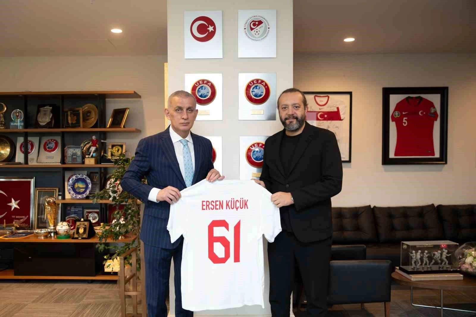 Trabzon Gazeteciler Cemiyeti Başkanı Ersen Küçük, TFF Başkanı İbrahim Ethem Hacıosmanoğlu’nu, Riva Hasan Doğan Milli Takımlar Kamp ve Eğitim Tesisleri’ndeki makamında ziyaret etti. Görüşmede, futbol camiasının gündemindeki konular hakkında karşılıklı fikir alışverişi yapıldı. Ziyaretin sonunda, TFF Başkanı Hacıosmanoğlu, Küçük’e üzerinde isminin yazılı olduğu bir A Milli Takım forması hediye etti.