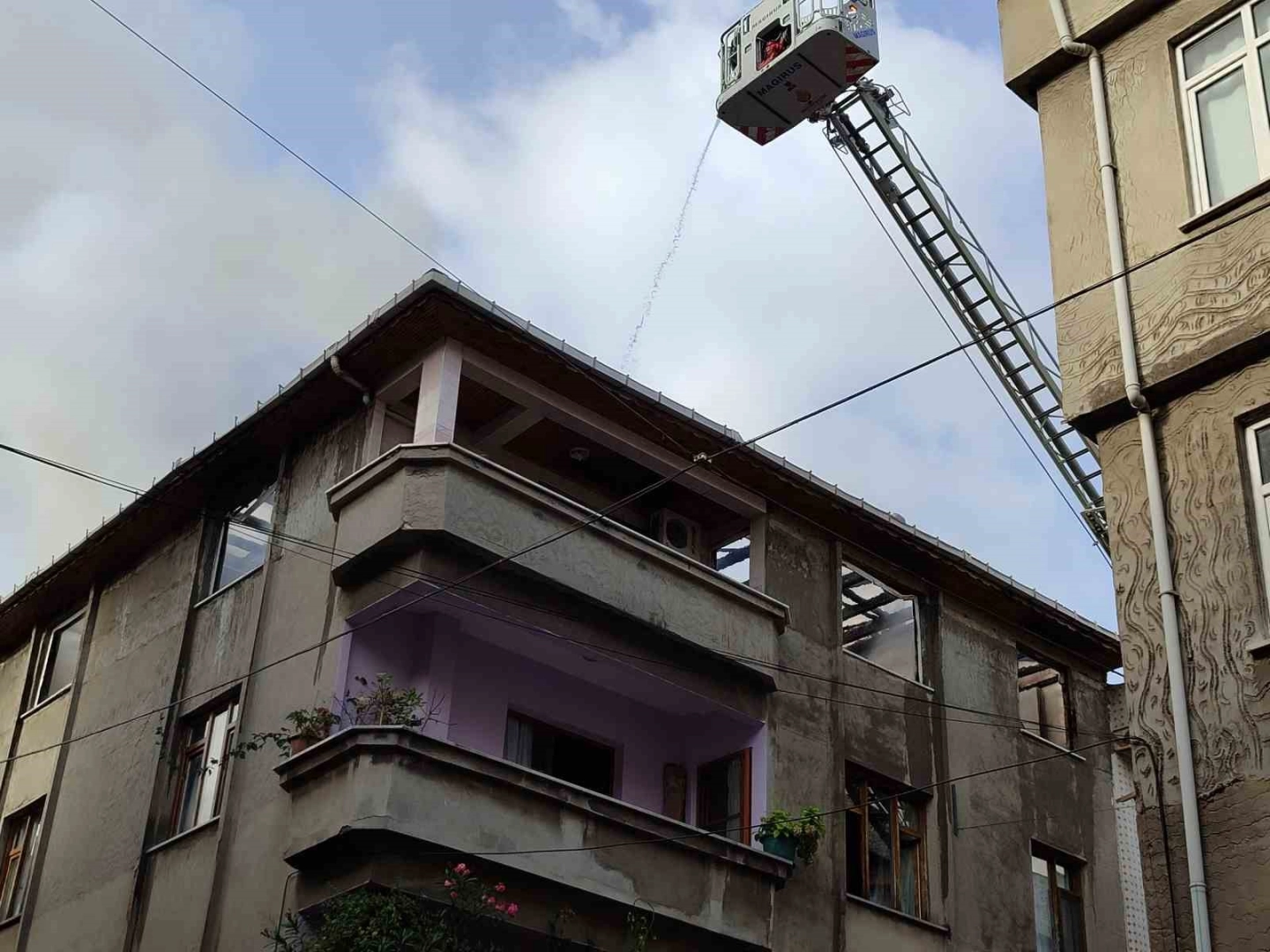 Alevlerin tüm çatıya sıçradığı yangın itfaiye ekiplerinin müdahalesi ile söndürülürken, yangın sonrası çatı kullanılamaz hale geldi.