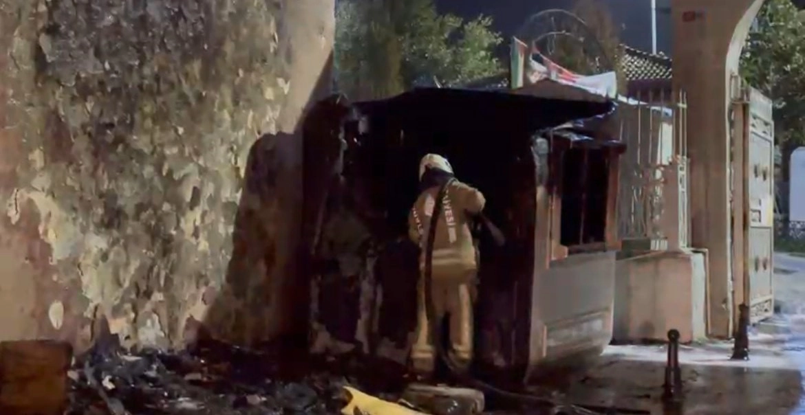 İstanbul Fatih’te cami dışındaki güvenlik kulübesi alev alev yandı
