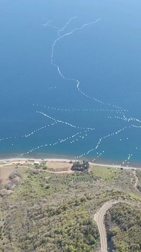 Yüzlerce pelikanın eşsiz uyumla süzülerek oluşturduğu görsel şölen, hem vatandaşların hem de havadan görüntüleyen yamaç paraşütçüsünün objektifine yansıdı.