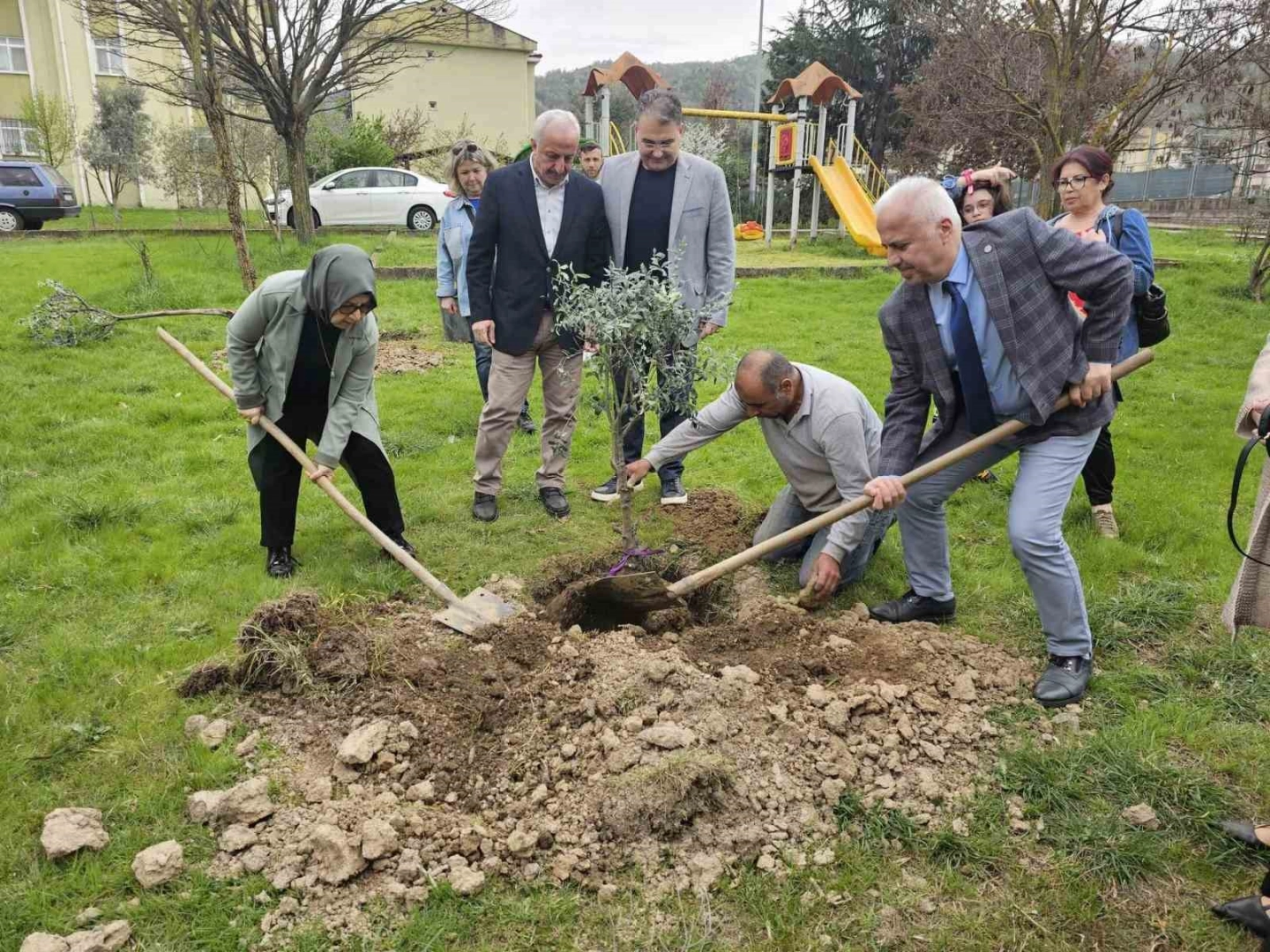 Gölcük’te Orman Haftası kapsamında düzenlenen etkinlikte zeytin fidanları toprakla buluşturuldu.