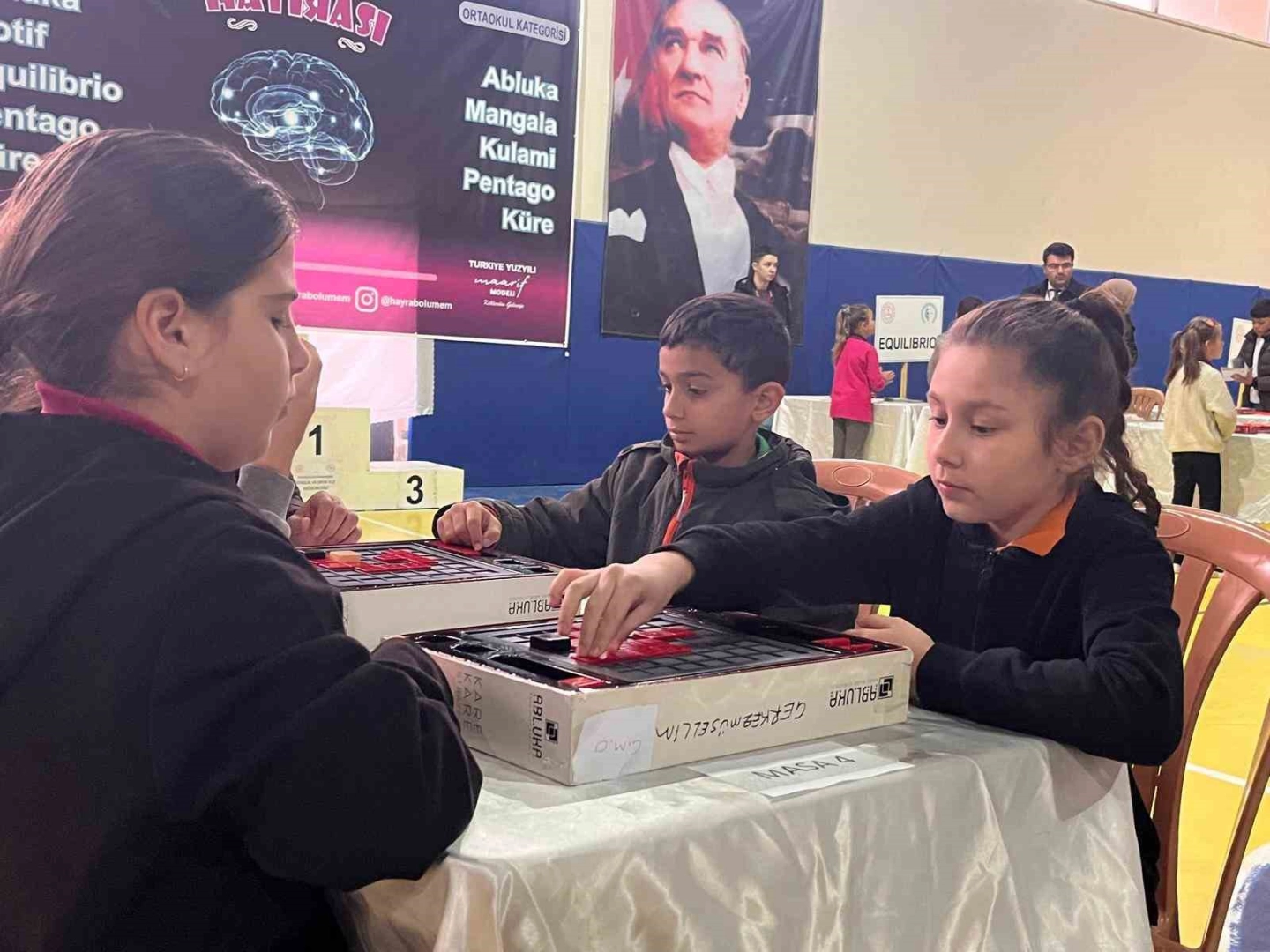 Hasan Yılmaz Kurt Ortaokulu Kapalı Spor Salonu’nda gerçekleştirilen turnuvaya katılan 168 öğrenci, Abluka, Motif, Aquilibrio, Pentago, Küre, Mangala ve Kulami gibi 7 farklı oyunda kıyasıya mücadele etti.