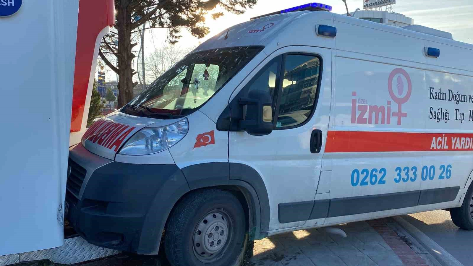 Kaza, Kandıra Sapağı meydana geldi. Edinilen bilgiye göre, sürücüleri öğrenilemeyen 41 FJ 521 plakalı özel ambulans ile 03 BK 040 plakalı otomobil çarpıştı. Çarpışmanın şiddetiyle kontrolden çıkan ambulans, ATM’ye çarparak durabildi. Kaza, maddi hasarla atlatıldı. İhbar üzerine olay yerine polis ve sağlık ekipleri sevk edildi. Bebek, başka bir ambulansa alındı.