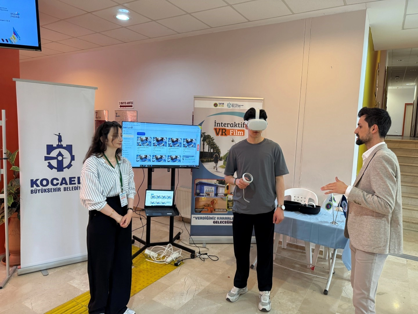 Kocaeli Büyükşehir Belediyesi ekipleri, Kocaeli Üniversitesi İletişim Fakültesi tarafından düzenlenen İletişim Festivali’ne katıldı. Ekipler, sanal gerçeklik (VR) gözlüğü ile sıfır atık temalı etkileşimli oyunlar ve seçenekli film gösterimleri düzenledi. Bu uygulamalarla katılımcılara; israfı önleme, yeniden kullanım, geri dönüşüm ve sürdürülebilirlik gibi konularda bilinç kazandırıldı. Festivalde en çok ilgi gören etkinliklerden biri olan atık ayrıştırma oyunu sayesinde öğrenciler, orman ve deniz ekosistemlerinde geçen senaryolarla hem çevresel sorunlara müdahale etti hem de çözüm üretme becerilerini geliştirdi.