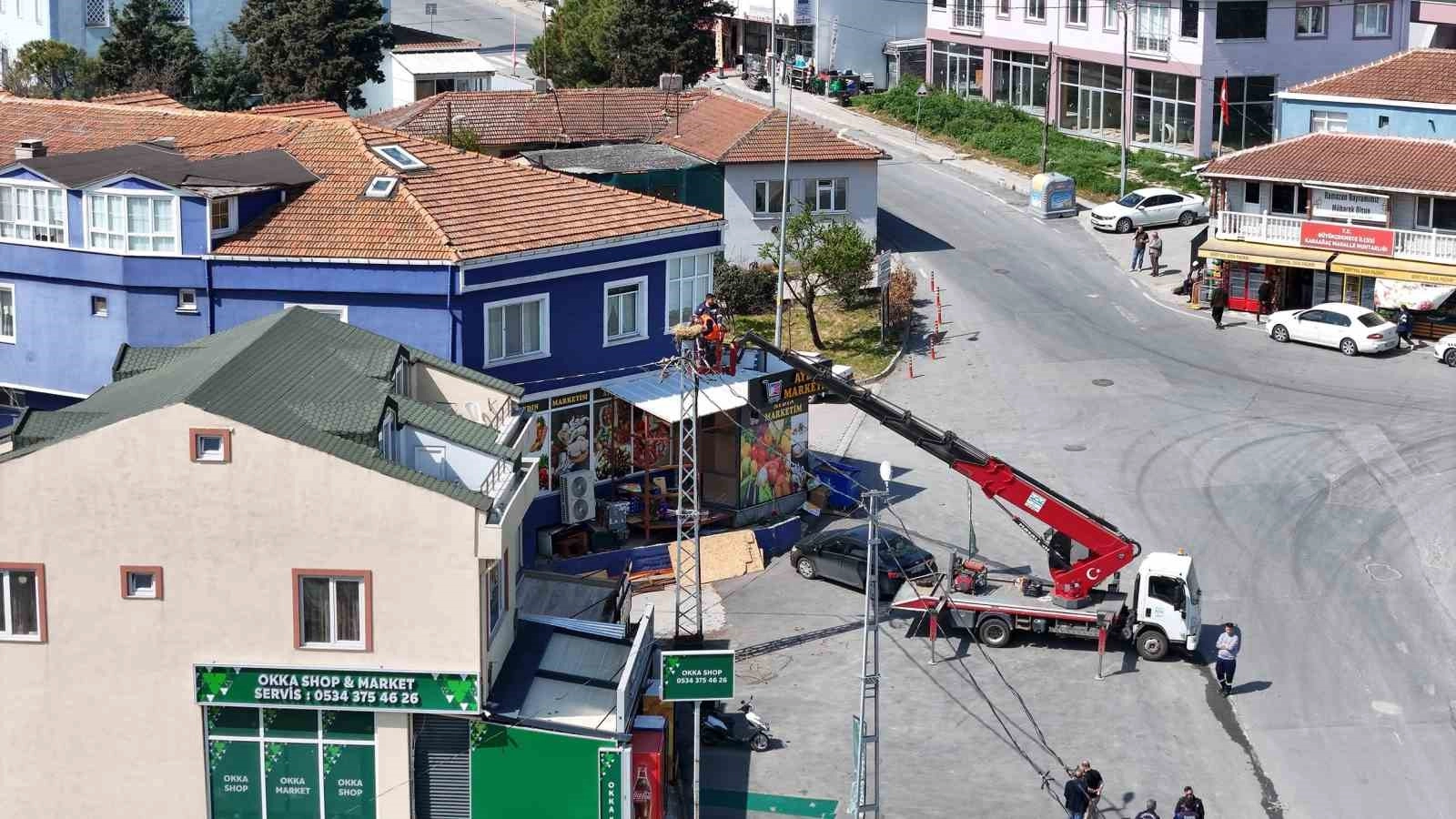 Karaağaç Mahallesi’nde yeni hizmete açılan lokantanın işletmecileri tarafından kaldırılan leylek yuvası Büyükçekmece Belediyesi ekiplerini harekete geçirdi. Yaklaşık 15 yıldır aynı elektrik direğinin üstüne yuva yapan leyleklerin yuvasını "çevreyi kirletiyor" gerekçesiyle kaldıran esnafa zabıta ekipleri tarafından tutanak tutuldu.