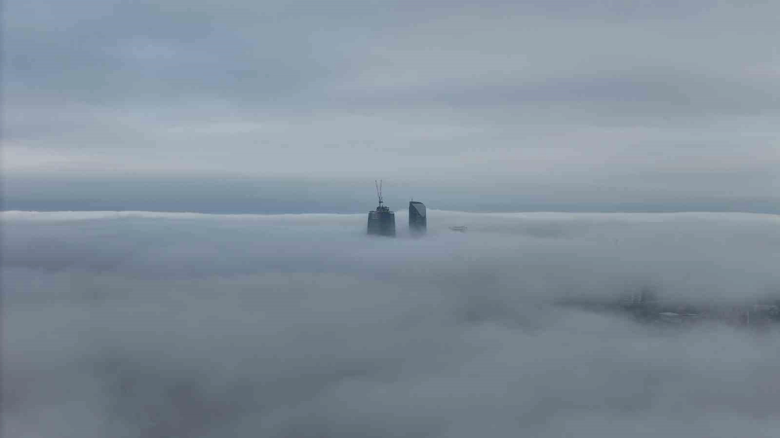 Simge yapılarının yoğun sis arasında kaybolduğu görülürken, havadan çekilen görüntüler kartpostallık manzara oluşturdu.