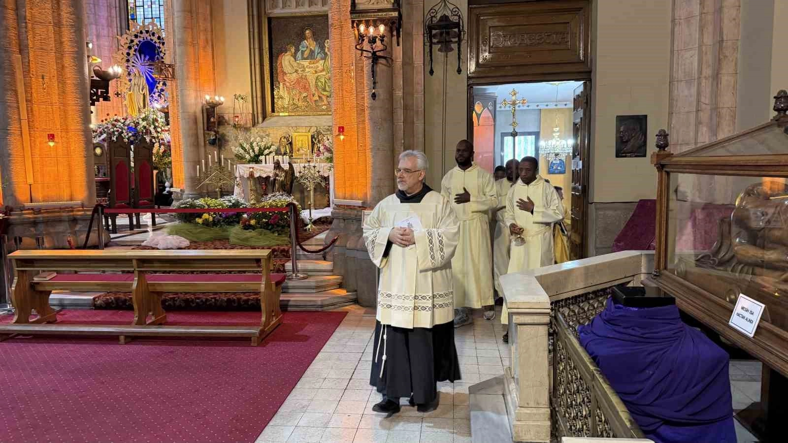 Vatikan’da 88 yaşında hayatını kaybeden Papa Franciscus için İstanbul’da ayin düzenlendi. Beyoğlu İstiklal Caddesi’nde bulunan St. Antuan Kilisesi’nde saat 19.00’da bütün Katolik kilisesi papazlarının katıldığı ayini Episkopos Massimiliano Palinuro yönetti. Düzenlenen ayine İstanbul’da bulunan Katolikler yoğun katılım gösterdi. Ayin sırasında hayatını kaybeden Papa Franciscus için dualar edildi.