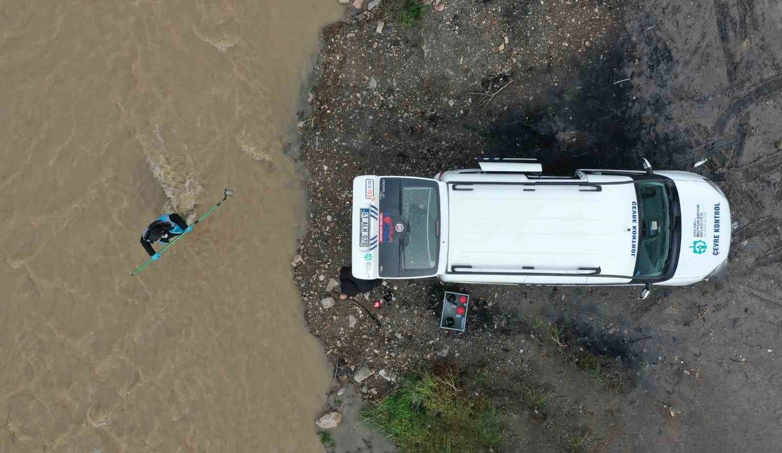 Saha çalışmaları sırasında debi, sıcaklık, pH, çözünmüş oksijen ve iletkenlik gibi parametreler yerinde ölçülürken, ileri tetkikler için alınan numuneler analiz edilmek üzere TÜBİTAK MAM Laboratuvarı’na teslim ediliyor.