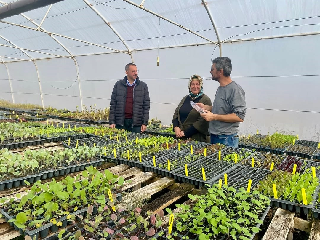 Kaymakam Özderin, örtü altı (sera) üreticiliği ve hobi bahçeciliğiyle uğraşan, aynı zamanda fide üretimi gerçekleştiren Gökhan-Aynur Erdınç ile Yetiş-Neşe Fidan çiftlerinin işletmelerinde incelemelerde bulundu. Ziyarette kadın üreticilerin çalışmaları ve yürüttükleri faaliyetler hakkında bilgi alan Özderin, kadın çiftçilerin emek ve özveriyle üretimin her alanında önemli bir rol üstlendiklerini belirtti.