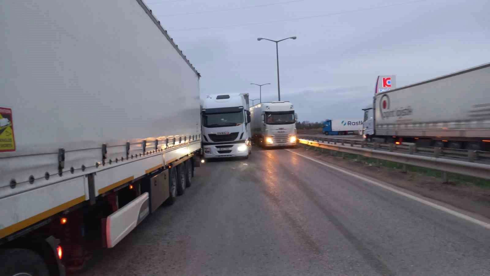 İhracat yüklerini, teslim edecekleri adreslere yetiştirmek için yola çıkan tır sürücüleri, bekleme yaptıkları tır parklarında cep telefonlarına gelen mesaj işe birden çıkış yapınca yollar tırlar ile doldu.