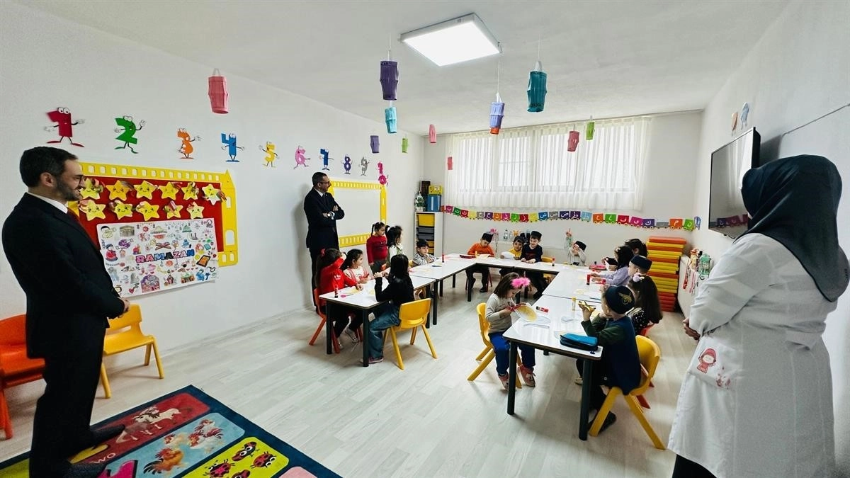 Balıkesir’in Havran Kaymakamı Enver Özderin, İlçe Müftüsü Sedat Karali ile birlikte Fetih 4-6 Yaş Kur’an Kursu’nu ziyaret etti.