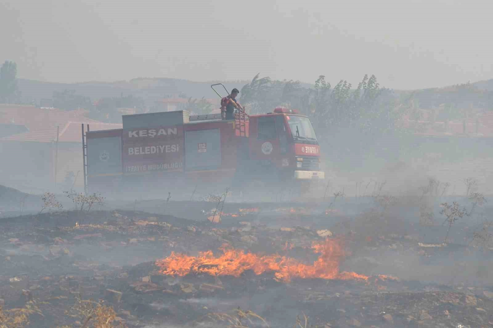 EDİRNE (İHA) – Edirne’nin Keşan ilçesinde, boş bir arazide bulunan demirleri alabilmek için topladıkları hurdaları ateşe veren kimliği belirsiz kişilerin sebep olduğu yangın, yerleşim yerlerine metreler kala söndürülürken, ev sahipleri rahat bir nefes aldı.